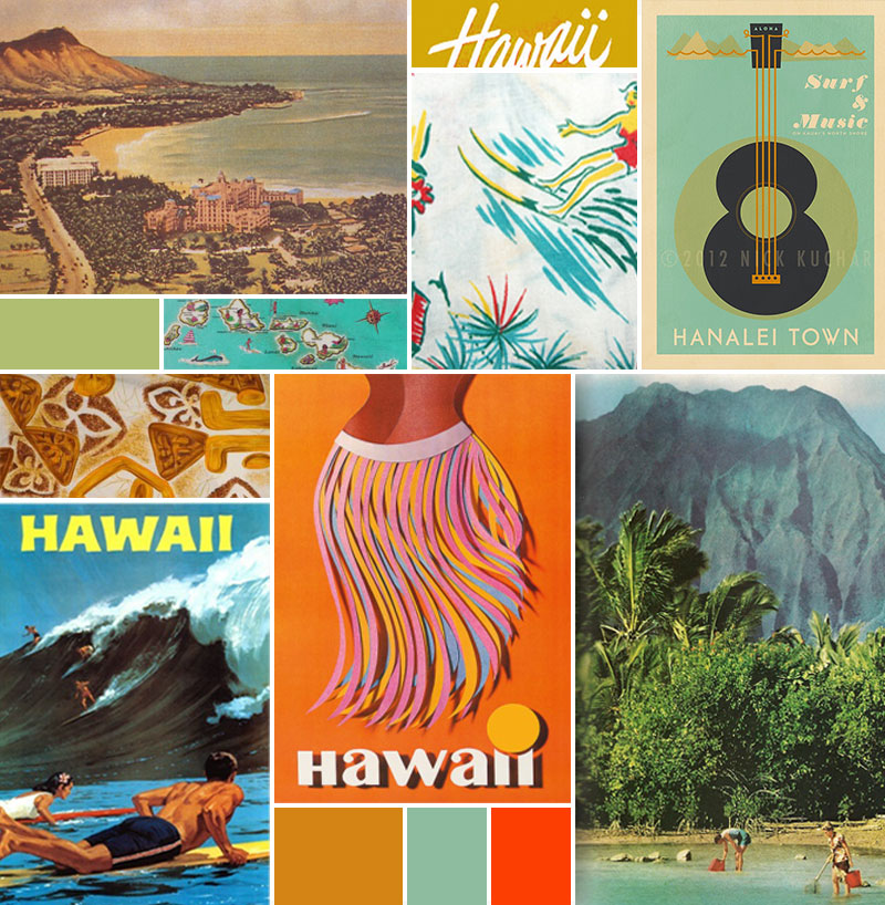 it’s been a while since i’ve posted my work and i have a few recent projects that i’m excited to share with you over the next few weeks!  starting with these.  these first birthday invitations were so much fun to create!  i love vintage hawaii designs and have been hoping that one of these days a client would approach me with that aesthetic in mind.  so when our good friend ida contacted me about doing her son’s birthday party invites with that very theme, i was pretty stoked to say the least.  below is the mood board we initially created to set the tone of the design and above is the finished product!  i even used my own photos of diamond head and the anahulu bridge to create elements within the invitation.  ida was a dream client to work with (and by the way, she makes some super cute jewelry that you should all go and check out) and we were both super pleased with how everything turned out.